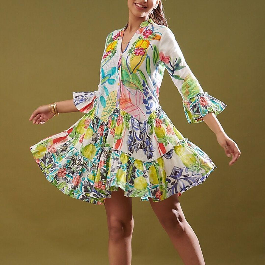 Playful, breezy, and full of personality - this dress is made for sun-drenched days and carefree vibes. Crafted in soft, breathable cotton, this dress features eye-catching prints in a lively palette that captures the spirit of summer.