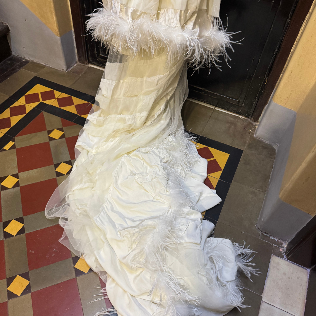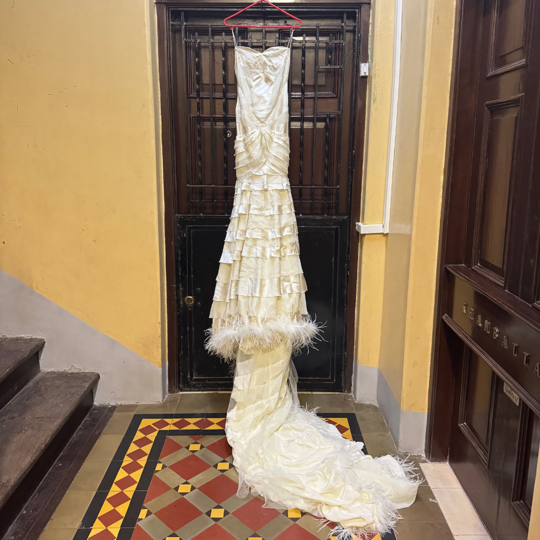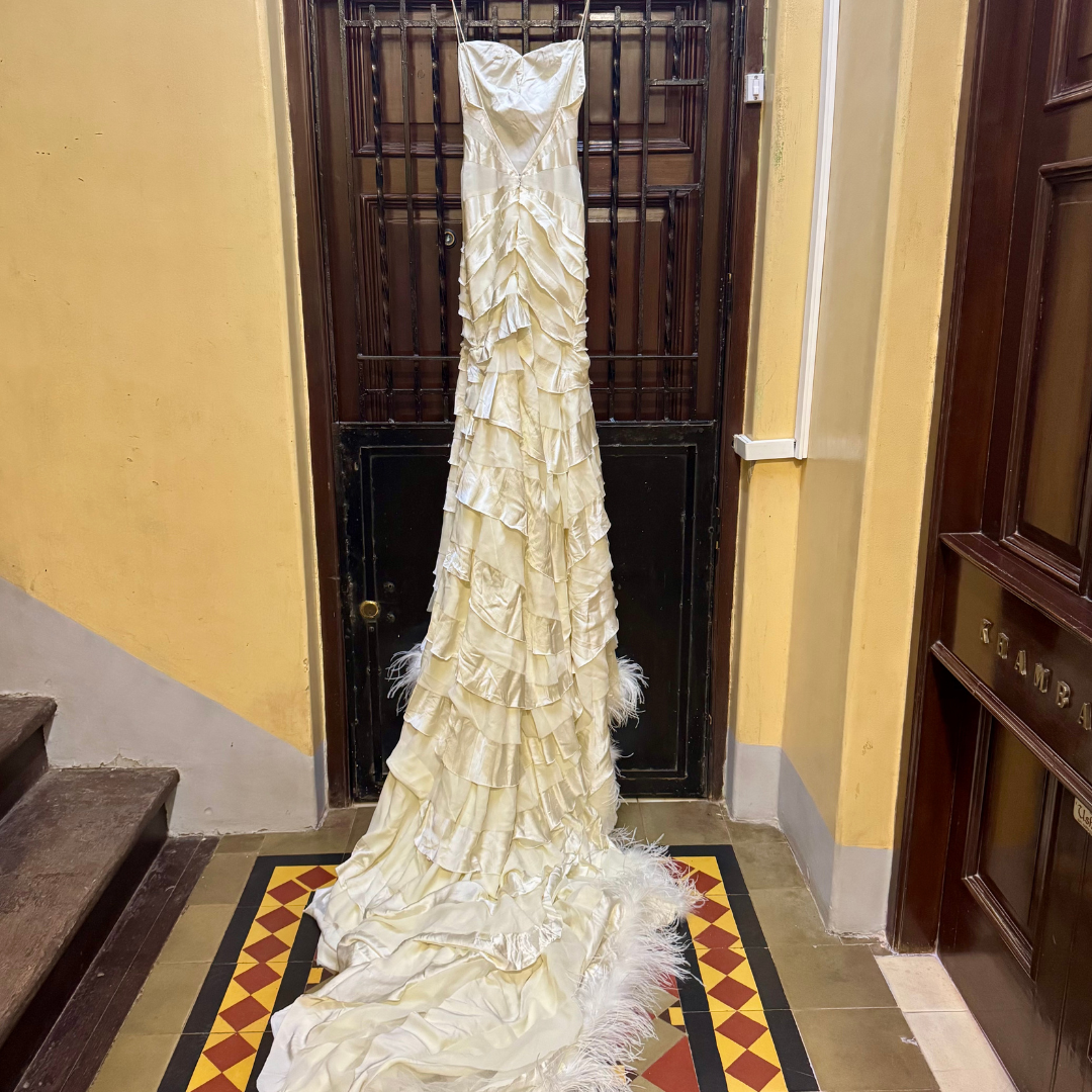Worn by Priyanka Chopra in a LUX TVC Ad just once, this dress offers refined look, while the architectural design elements—including bold asymmetrical draping and carefully placed embellishments—make it a standout choice for formal occasions. Whether you're attending a gala, a wedding, or a red carpet event, this dress guarantees a breathtaking presence.