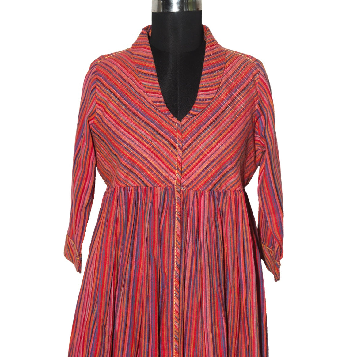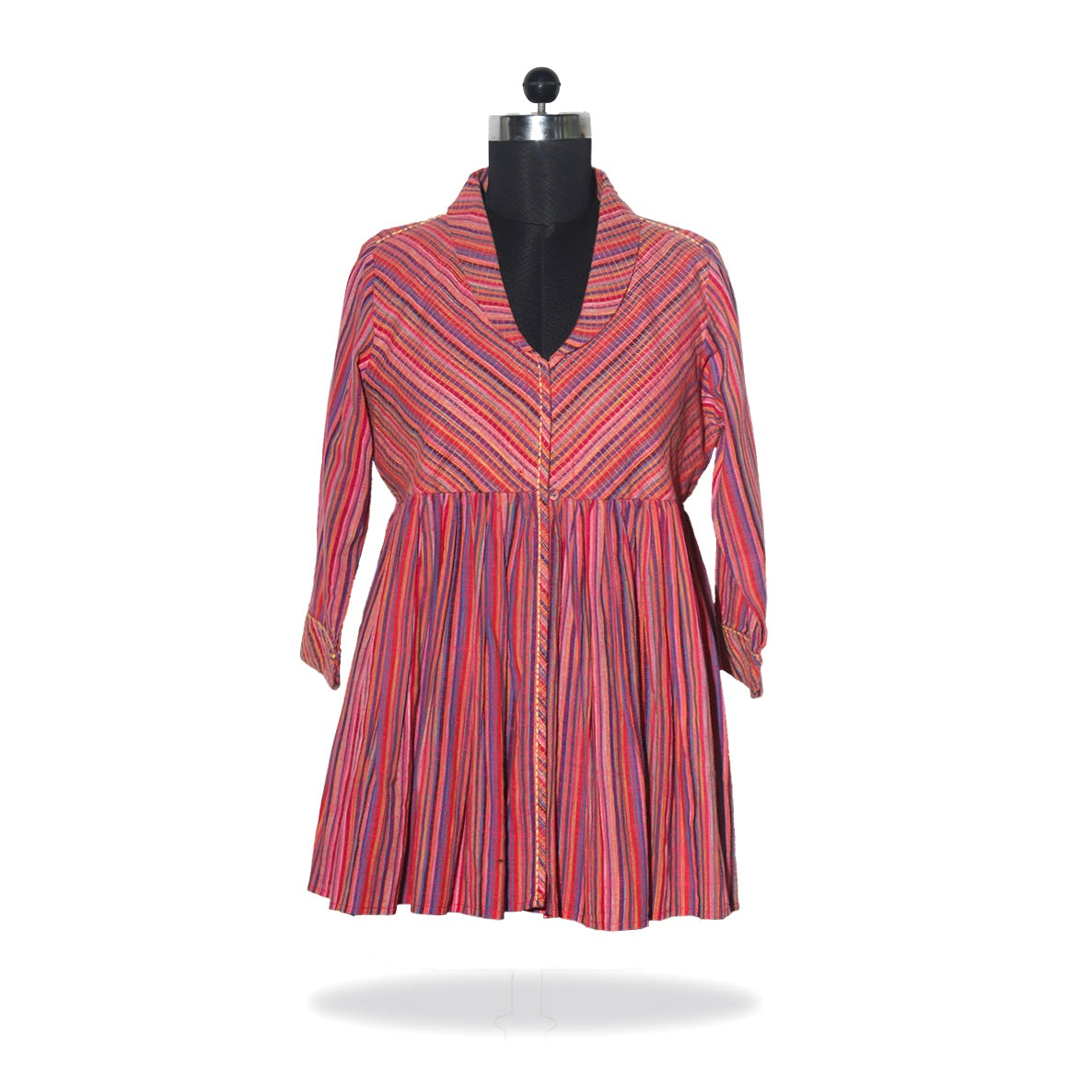 Crafted from soft, breathable cotton, this kurti features subtle stripes that elongate the form, while the peplum waist adds a flattering, feminine touch. The relaxed yet structured design makes it perfect for workdays, casual outings, or festive lunches.