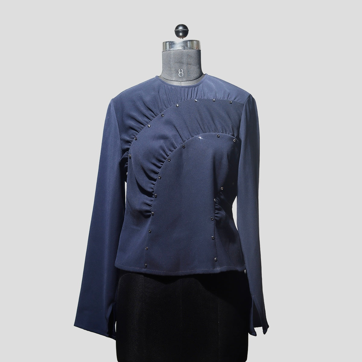 Elevate your wardrobe with the Studio Moonray Navy Meridian Top, a sophisticated yet effortlessly stylish piece designed for modern elegance. Crafted from soft, breathable fabric, this top features a rich navy hue that adds depth to your outfit while maintaining versatility for both casual and more refined occasions.